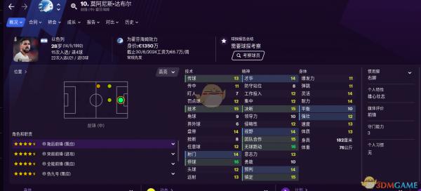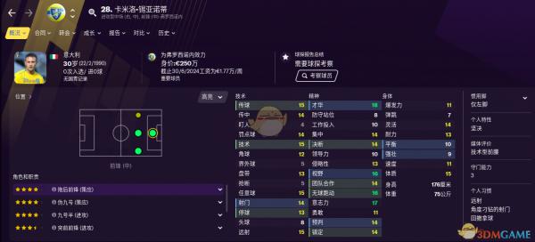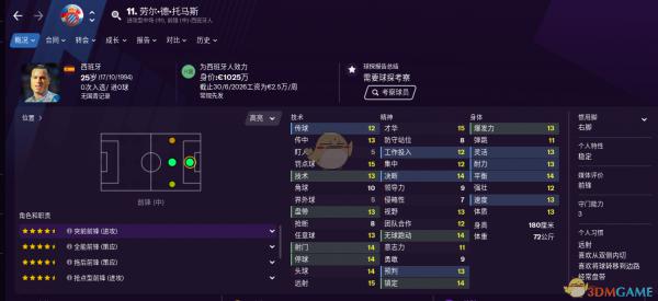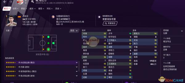 身体稍差 对于开档中下游球队来说 应该算的上好用的伪9 或者拖后 唯一遗憾 工作投入只有10
