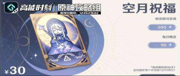 2、商城的推荐商品,就是名为空月祝福的月卡,价格为30元;