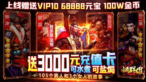 【水煮群雄】是一款3D写实水浒卡牌类精品手游。以收集武将为核心玩法,自行选择和调制搭配的武将阵型设计,可以让你在输出,控制,辅助,远程之间任意切换,打造专属于你自己的独特武将阵容。游戏内容打造纯正水浒题材,3D写实风格搭配即时战斗、大招指向的玩法机制塑造出更为真实的游戏打击体验,再配以炫酷的打击特效,让战斗感官更加真实。除了武将的实力培养之外,武将的阵容搭配和战斗位置能让战斗更添趣味。名将列传挑战,实时的演武场、辕门挑战和群雄逐鹿,新颖的PVE:摸金、神兽试炼、上古巨兽、闯联营等玩法一应俱全。热血的军团争霸、军团讨伐和跨服战让游戏更具挑战性,再加以休闲的赛马玩法,让主公在刺激的战斗之余也能得以乐趣。