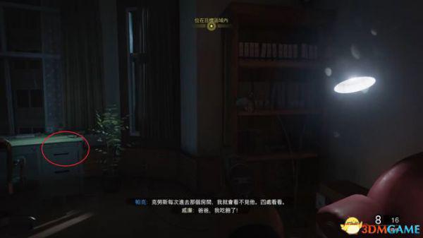 这个字条可以在进入克劳斯房间后,潜伏等她妻子离开。
