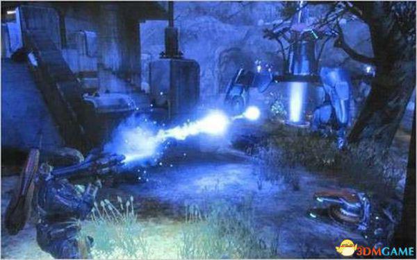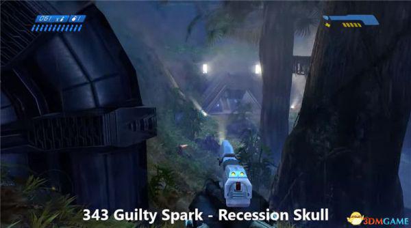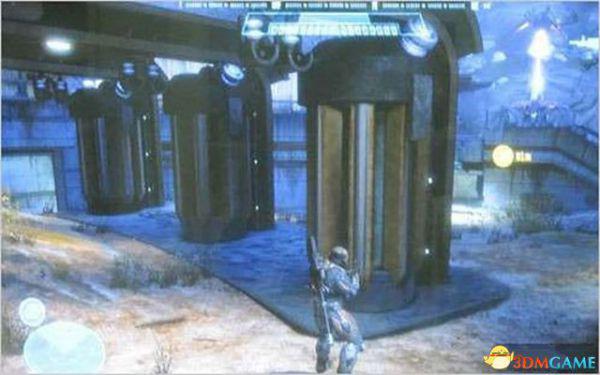 然后我们来到一个很漂亮的发光塔,狙掉上面机枪台的小猪。然后从左面小路清过去,不要心急。屋里有喷子和人类手雷。最后会有一个拿粘雷炮的高级精英,喷掉后捡起它的武器。然后运兵船会运来这个环节最后一波兵,两只隐身精英加两个猎人。找个柱子侯着,等那两个隐身精英过来。盯紧自己的雷达,血低了就绕柱子躲猫猫。