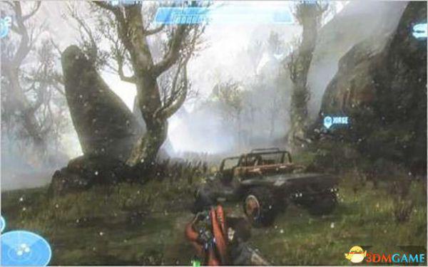 到了这里我们就见到了很多从3或者ODST开始接触光环的玩家都还没打过的精英,大家要开始适应打这些跳来跳去会无敌会护盾回复的讨厌的家伙了。这里你需要做的只是打打小猪的头,扔扔手雷,电浆枪蓄力爆精英的甲,最后捡起那个高级精英的电浆榴弹枪出发。下来就看到一辆卡车,只要你愿意,你可以开着这个车直接顺着大路冲到这一小节结尾处保护撤离区那里去。不过除非你想速刷单人传奇的成就否则非常不建议这么做。后面很多关都是类似的非强制战斗,就不再重复。