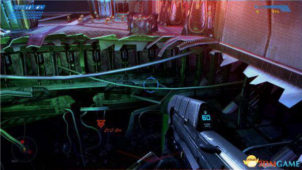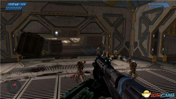 根据提示来到一个大厅,里面有工程师罩着的一大堆兵,仔细找找悬浮在半空中的工程师,几枪打掉在打小兵,小兵可以引回通道打。两边斜坡上去有弹药。不过这里还是有两个光束枪怪比较难搞。远处基本打不死,只有耐心清掉其他的再靠近中距离打掉。开启开关进入下一环节。
