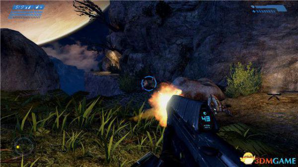 出来就是一段比较长的剧情和侦察,第一次战斗发生在刚出门到一片开阔地的地方。这里大家会见到亲切又熟悉的小猪和豺狼怪,在几个无敌NPC的火力下你只需要掏出小手枪随便爆爆头就好,打完了就把你的冲锋枪换成星盟的刺针步枪,比前作的酷多了,除了部分高级怪,其他怪都是3枪打爆,小怪一枪爆头。