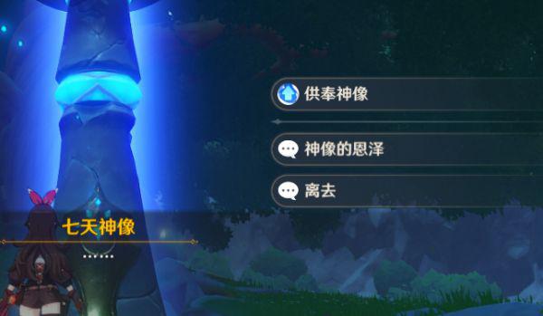 2、当玩家找到七天神像之后,可以靠近,然后进行交互,就可以出现供奉神像的选项了。