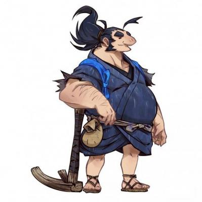 是个心地善良的壮汉,因为太喜欢下田工作,而经常被严格的父亲责骂。因其在战场上逃亡而无法再踏进家门,最后沦落为山贼。