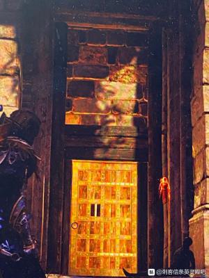 先上房顶,然后找到一根绳子走到一个平台再走绳子到第二个平台,这时候你是在房子背面的,墙上有铁网,你可以透过这个网射到门栓。