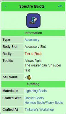 2、该装备无法通过怪物掉落,穿上该靴玩家可获得飞行能力,同时它也是制作“闪电靴”的材料之一。