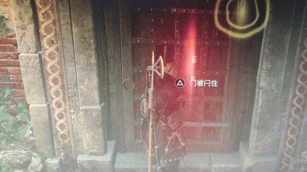 点出残暴之握,双持双手武器,主手双手斧,重攻击竖劈隔着门劈开门栓。