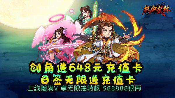 热血武林(海量充值卡)游戏以神雕武侠为背景,讲述在乱世中,玩家可扮演主公的角色,招募各种侠客名将,来实现登顶巅峰的梦想。游戏拥有天命、战魂、侠客等战斗培养元素,还引入比武场、竞技场、城池争夺、擂台争霸等PVP玩法。