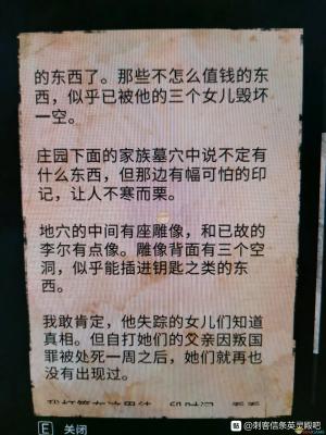 东盎格利亚废弃庄园墓穴里的三个钥匙,这三把钥匙完全没头绪啊,是要找到失踪的三个女儿吗?