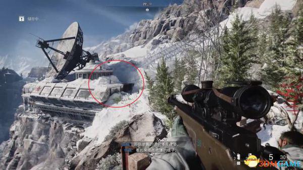 杀入基地后,在院内找到防空炮,安上炸弹。