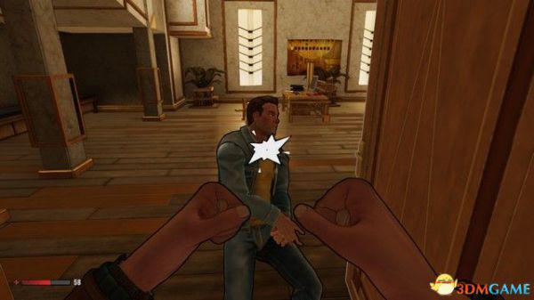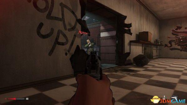 门外有一个暴徒,可以隔着门窗射击,这个游戏的敌人AI特别傻,