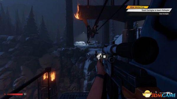 虽然我们逃了出去,但敌人紧追不舍,缆车被炸后,爬梯子上去使用狙击枪将外边的敌人狙掉,
