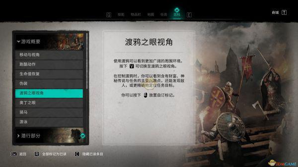 在控制渡鸦时,你可以看到含有财富、神秘传说与任务的主要兴趣点,还能发现敌人,或更精确地定位任务目标。