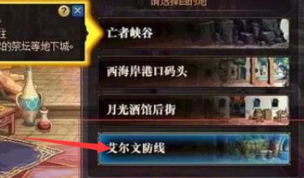 2、之后我们选择前往的地方,艾尔文防线,进入;