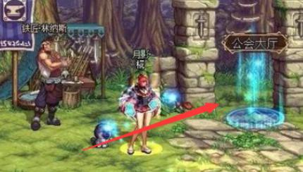 5、进入有就会出现如图的界面,继续往右走就是公会地下城了。