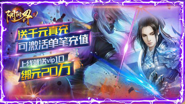 阴阳界(送1000充值)是一款3D自由视角的高画质仙侠游戏,独有飞行系统,解锁翅膀后,即可自由翱翔,天下之大任君飞舞。游戏中除去常规的副本玩法外,还有多种战场玩法:命运战场,超多玩家肆意弑杀,感受竞技乐趣。夺旗战场,抢旗杀人,驰骋天涯