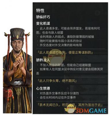 《全面战争:三国》传奇人物外交特性一览