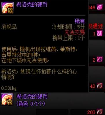 1、希洛克的硬币使用后,随机出现拉维茜、莱斯特、吉里特效中的1种;