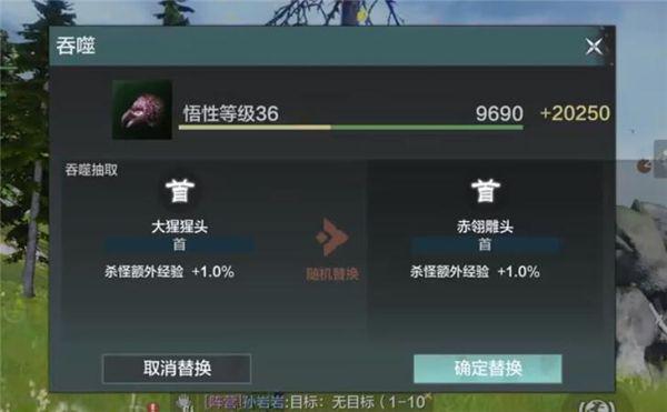 1、首先要让自己的宠物,和另一只野外异兽战斗,比如赤翎雕在斗兽中成功战胜异兽之后,就会概率触发吞食抽取,触发之后就可以抽取大猩猩的任意部位,比如头或者胳膊;