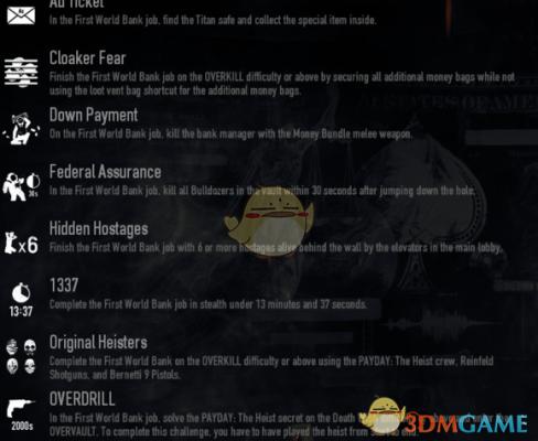 2、枪林弹雨或以上难度完成世界第一银行,不使用通风管道运走额外的战利品