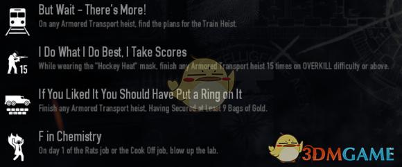2、装备Hockey Heat面具,完成15次枪林弹雨或以上难度的武装押运劫案