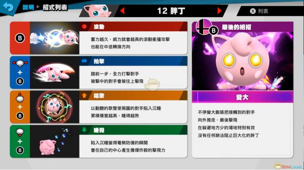 任天堂明星大乱斗特别版胖丁技能招式一览