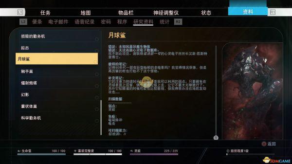 月球鲨的弱点是灵能,免疫电磁脉冲和电击。由于血量高、攻击范围大、伤害高,用枪械和它进行战斗也是比较吃亏的。