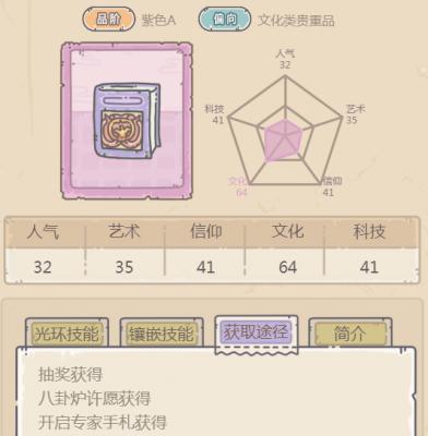 1、在游戏中,沉思集可以通过抽奖获得,八卦炉许愿获得,开启专家手札获得;
