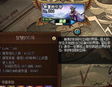1、角色等级达到96级时,开放事件任务“智慧的引导]时间的呼唤”;