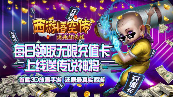 每天领取充值卡!LB888领取传说神将 LB666领取1000连抽!每天的今日福利里可以免费领取充值卡,签到第3、8、13等天数也有充值卡《西游悟空传(送海量充值)》是首款3D放置类卡牌游戏,采用写实风格进行设计,剧情高度还原原著,并诠释了西游内所有未解之迷。通过在战斗中的各种策略以及武将技能搭配消灭敌人,并最终获得真相。在战斗之外,玩家可以通过每天完成任务获得奖励,解锁更多的神将角色和装备。关键他不充钱也能玩的爽(σ゚∀゚)σ..:*☆哎哟不错哦!!!