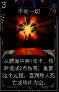 从牌库中弃1张卡,然后造成2点伤害,重复这个过程,直到敌人死亡或牌库为空。