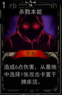 攻击卡是《血牌》中对付敌人的有效手段,尤其是一些敌人会随着回合数的增加而变得强力,这就需要我们使用强力的攻击卡消灭敌人,攻击卡的数量很多,杀戮本能就是其中的一张,下边就给大家带来杀戮本能属性介绍,大家可以来看一看。