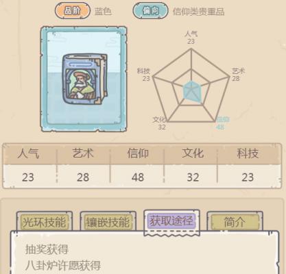 1、在游戏中,占星四书可以通过抽奖获得,八卦炉许愿获得;