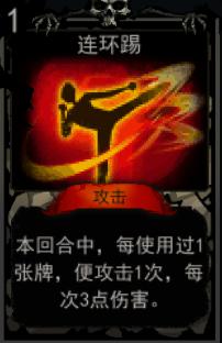 攻击卡是《血牌》中对付敌人的有效手段,尤其是一些敌人会随着回合数的增加而变得强力,这就需要我们使用强力的攻击卡消灭敌人,攻击卡的数量很多,连环踢就是其中的一张,下边就给大家带来连环踢属性介绍,大家可以来看一看。