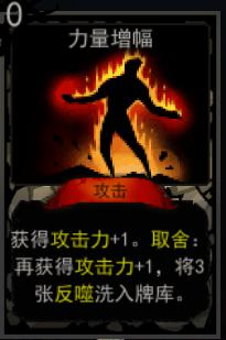 攻击卡是《血牌》中对付敌人的有效手段,尤其是一些敌人会随着回合数的增加而变得强力,这就需要我们使用强力的攻击卡消灭敌人,攻击卡的数量很多,力量增幅就是其中的一张,下边就给大家带来力量增幅属性介绍,大家可以来看一看。