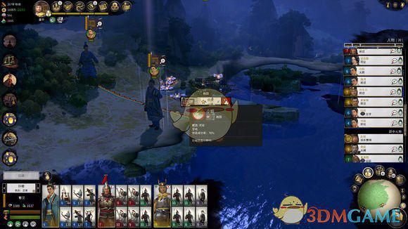大家可以看到我们在这个位置是完全可以攻击到同安城的,不需要移动,并且我们可以点击同安守军,发现是水将+2个木将,然而从旗子上可以看到对方的领袖是一个金系将,显然不是这三个人中的任何一个,所以这一轮没有领袖,所以金装是没有的了,但是这张图的重点在于大家可以看到旁边的那个友方部队,他是在支援范围内的,而且他也处在我方地界,是可以恢复兵力和血量的,也就是说他可以蹭经验!我们可以同时刷两支甚至更多部队的经验!