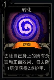 防御卡是《血牌》中初期最重要的卡,因为刚进游戏的时候不可能在规定时间内击杀怪物,因此需要靠防御来抵挡死神的伤害,转化就是其中的一张防御卡,下边就给大家带来血牌转化属性介绍,大家可以来看一看。