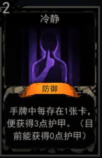 防御卡是《血牌》中初期最重要的卡,因为刚进游戏的时候不可能在规定时间内击杀怪物,因此需要靠防御来抵挡死神的伤害,冷静就是其中的一张防御卡,下边就给大家带来血牌冷静属性介绍,大家可以来看一看。