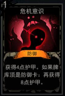 防御卡是《血牌》中初期最重要的卡,因为刚进游戏的时候不可能在规定时间内击杀怪物,因此需要靠防御来抵挡死神的伤害,危机意识就是其中的一张防御卡,下边就给大家带来血牌危机意识属性介绍,大家可以来看一看。