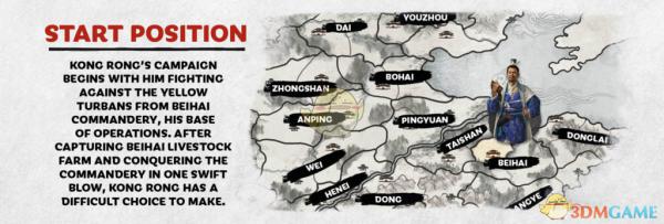 四面被黄巾包围,一个伟大的战士(太史慈)可能会为孔融服务。他是派那个他去寻求外部援助(历史上,太史慈曾为救孔融而单骑突围向刘备求援),还是把那个英雄带进自己的阵营帮助击退叛军?