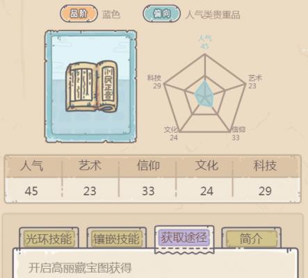 3、镶嵌技能:置于高丽博物馆,赋予效果:高丽探索,人气判定降低5。