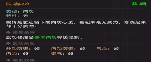 2、长春功练至返璞归真后上玄远岛对话庞清,然后将长春功激活为当前内功功体;