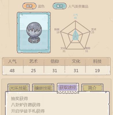 1、在游戏中,哥斯达黎加石球可以通过抽奖获得,八卦炉许愿获得,开启学徒手札获得;
