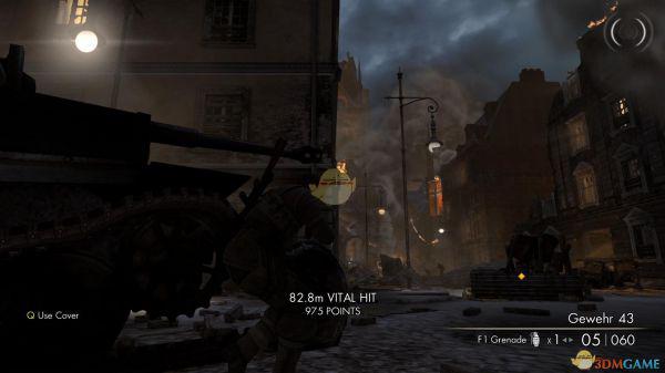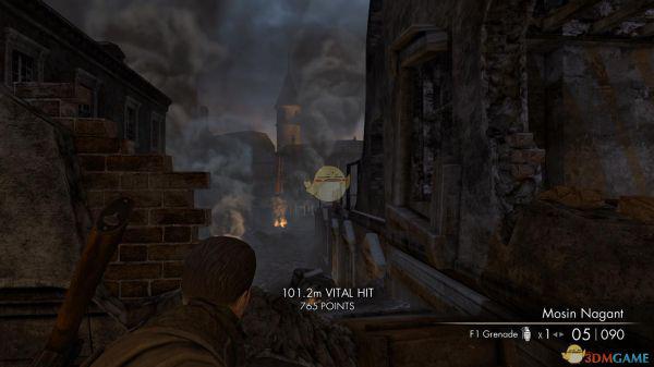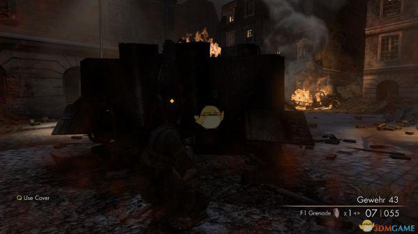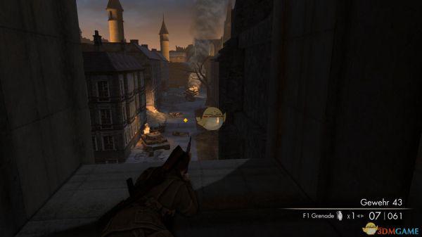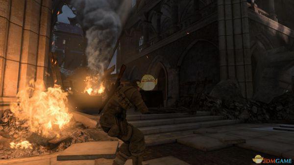 1、一开始主角又出生在一个甬道里,出了甬道后,会发现一辆破旧的坦克,旁边有一个巡逻的德军士兵,毫无费力的干掉后,会引来其他的德兵,这时候你可以靠着那辆废旧的坦克干掉这波援兵,之后先不要着急冲出去,因为外面有两个狙击手等着你,一个在坦克炮口正对面楼上,一个则在一座冒着烟的教堂上,因为烟雾的关系,你是看不到这个狙击手的,所以只有靠狙击镜片的反光发现他,所以你必须提前将枪口瞄准在那里,一旦看见了反光,立刻狙杀之。