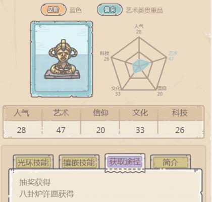 3、镶嵌技能:置于埃罗博物馆,赋予效果:埃罗探索,艺术判定降低5。