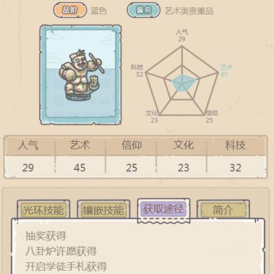 1、在游戏中,说书俑可以通过抽奖获得、八卦炉许愿获得、开启学徒手札获得;