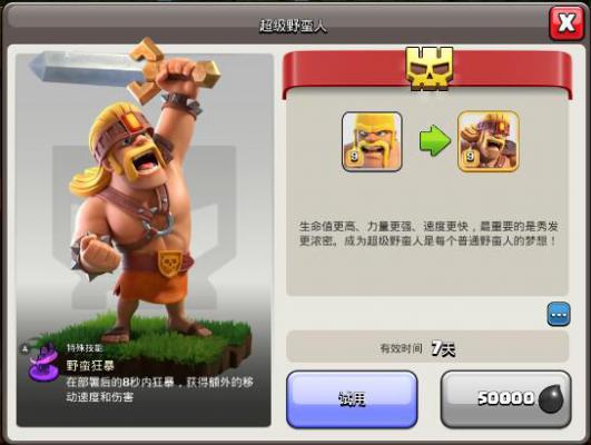 1、部落冲突超级野蛮人获得方法是大本营需要达到11级,且野蛮人兵种等级达到一定等级;