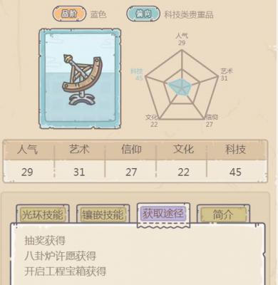 1、在游戏中,麦哲伦经线仪可以通过抽奖获得、八卦炉许愿获得、开启工程宝箱获得;